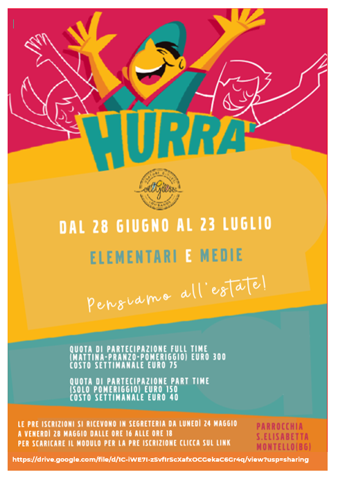 Per motivi organizzativi è opportuno aderire all’iniziativa da lunedì 24 a venerdì 28 maggio in segreteria parrocchiale, modulo al link:
